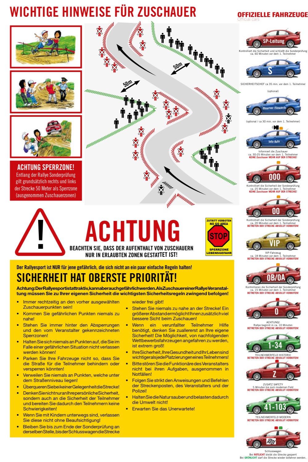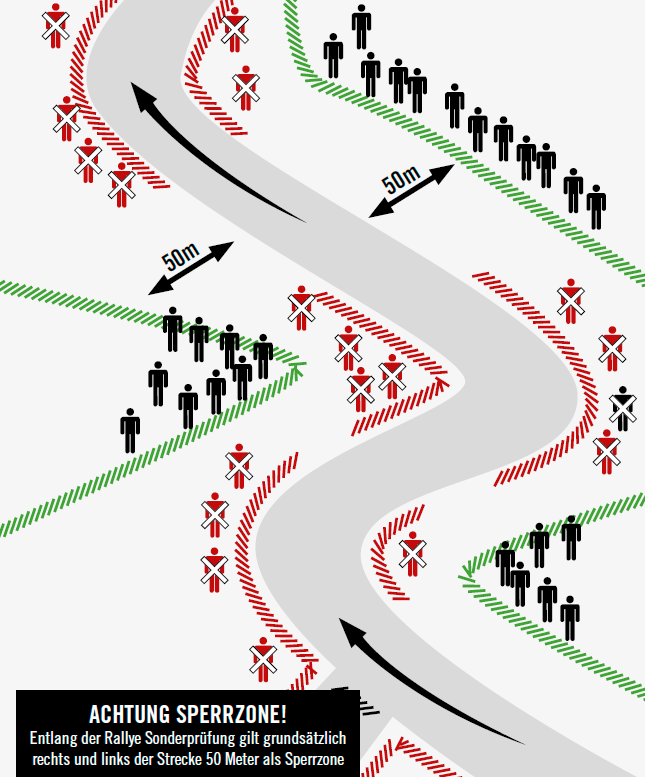 There is a 50m safety zone right and left to the special stage road (except spectator zones).